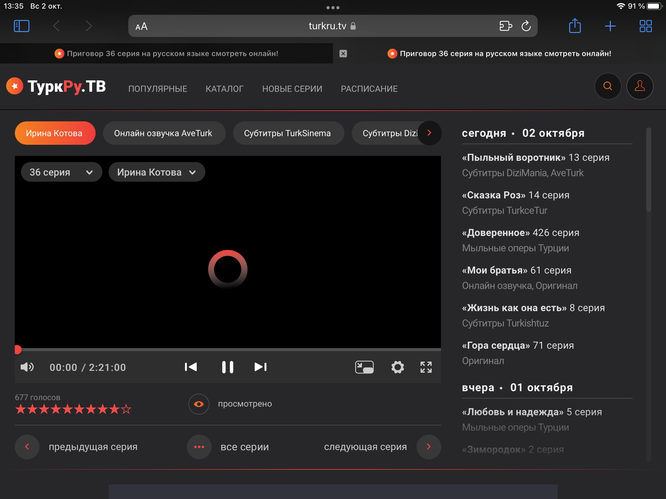И у меня так же,тоже с айпада смотрю и смотрела раньше и всё было нормально ,а сейчас не загружает (в чем проблема подскажите пожалуйста