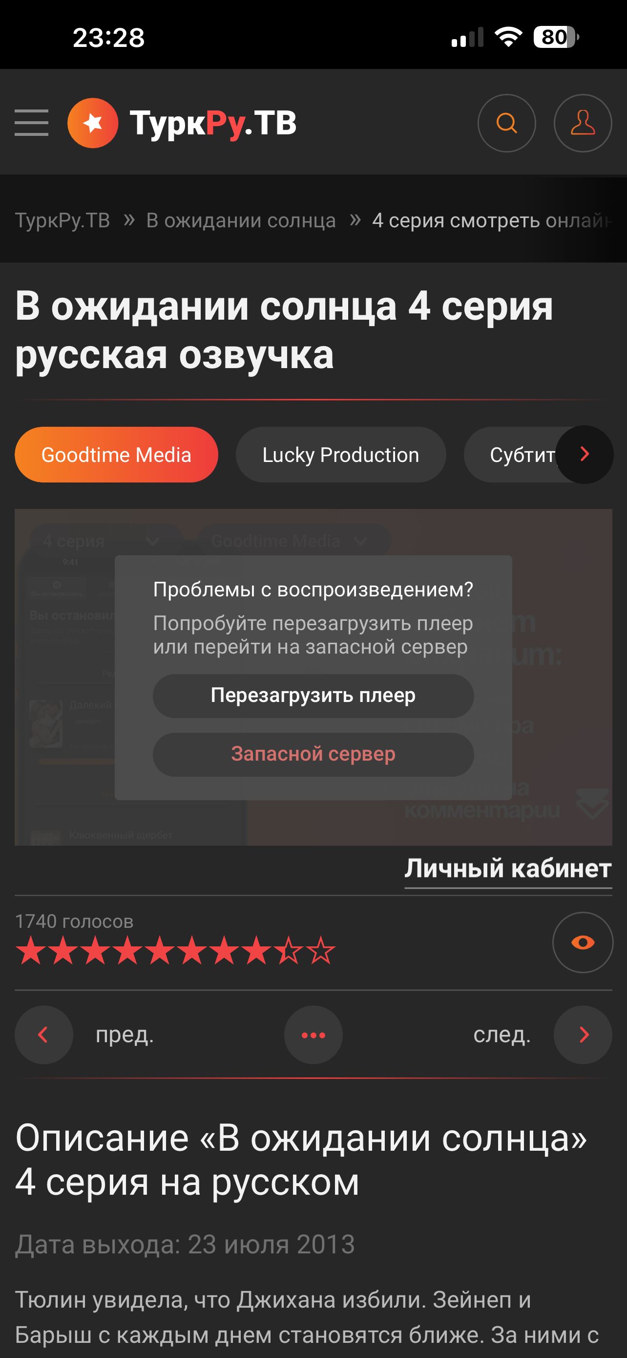 Сайт работает, но проводятся технические работы. Плеер может быть недоступен или временно не работать у некоторых сериалов или серий. Приносим свои извинения за возможные неудобства. Спасибо за понимание!